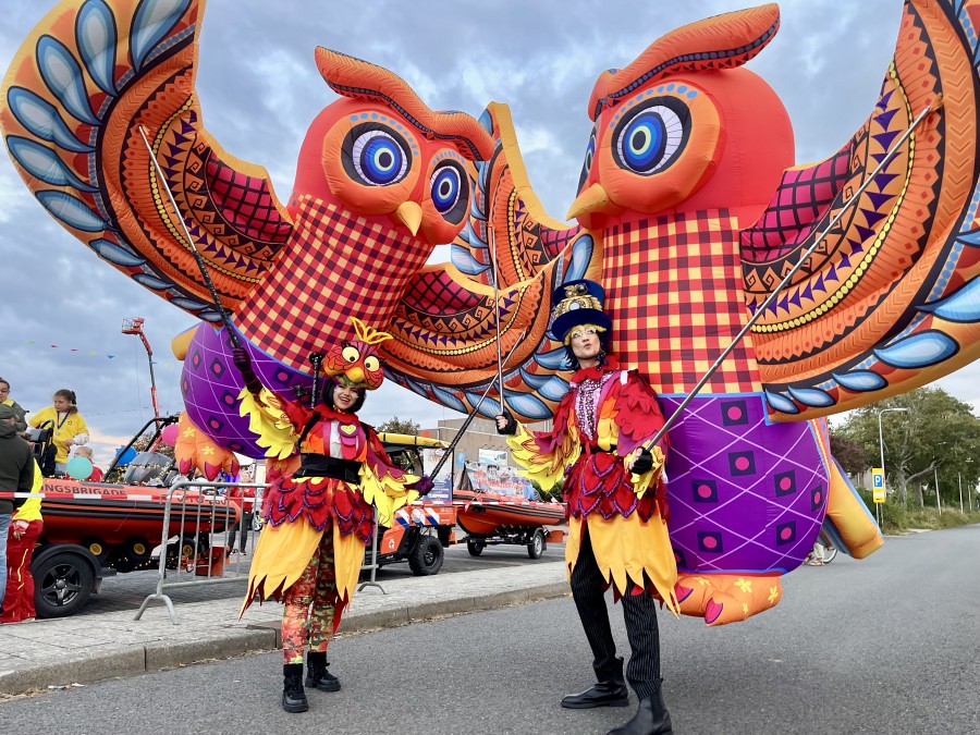 De show wordt onder de vleugels van de grote lichtgevende uil uitgevoerd. Een interactieve show, vol uitdeel- en fotomomenten en tevens een kleurrijk schouwspel geschikt voor jong en oud.