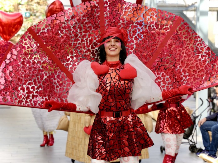 In deze energieke parade show wordt de lucht doordrongen van liefde. Dansers hullen zich in transformerende wolken kostuums en laten glinsterende hartjes hoog in de hemel dansen.