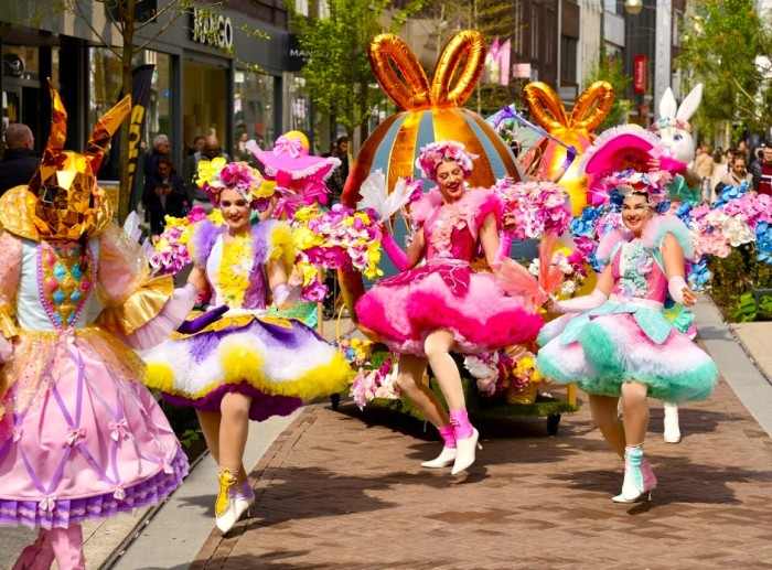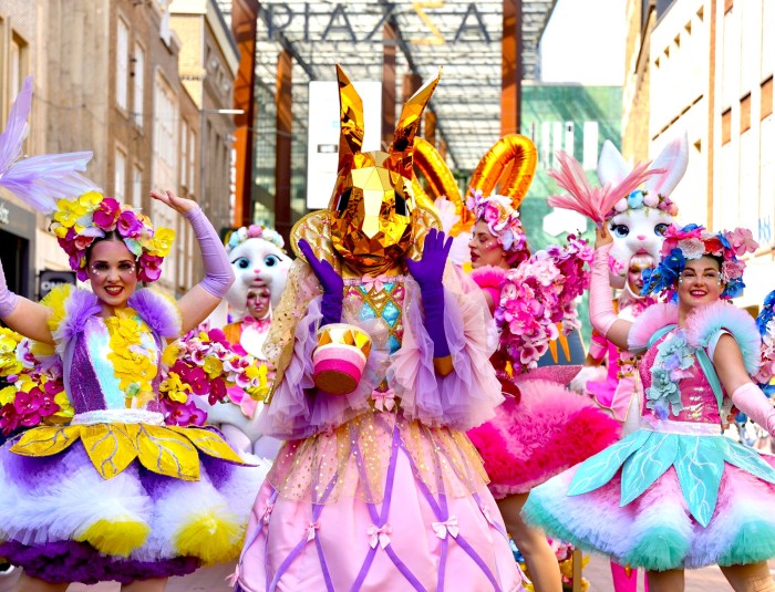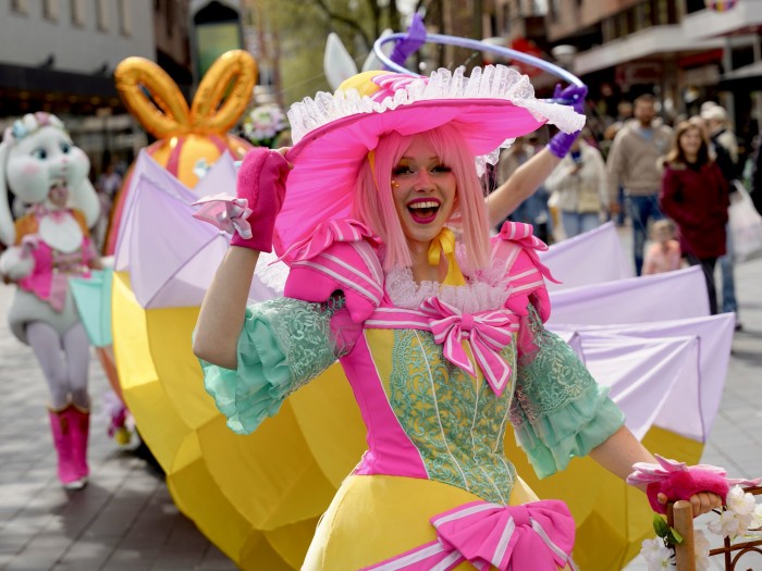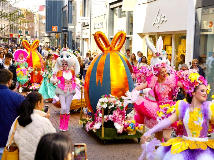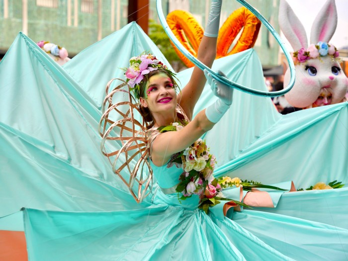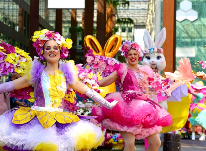 Met dansers gehuld in kleurrijke bloemenkostuums, openen deze Bloemenfeeën in danschoreografie de parade. Betoverende Paasei karakters delen lekkers uit zoals chocolade paaseitjes vanuit uit vrolijke bloemenmanden. Een reuze ei volgt met de dartelende fun karakters; de Crazy Bunnies.