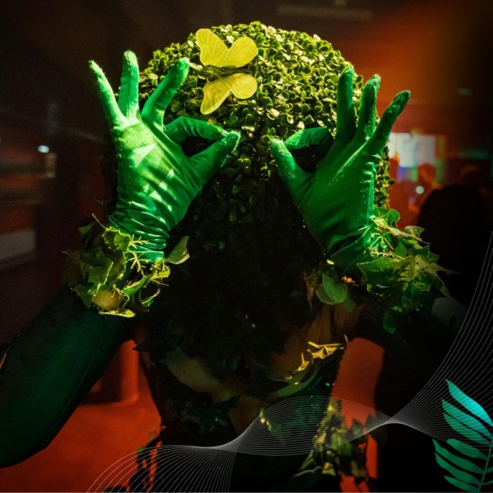 De performers worden verspreid over het terrein geplaatst: bij paden, pleinen of tussen het groen. Zo ontstaat overal een levende, groene magie.