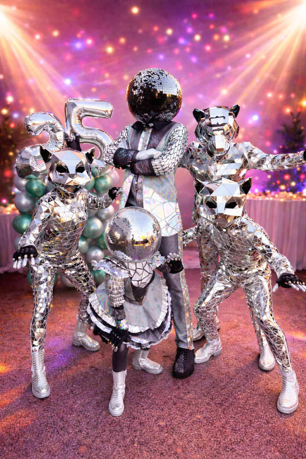 Deze levende discoballen zijn perfect voor het toevoegen van sfeer en entertainment op feesten en evenementen. Met hun schitterende spiegels, zullen ze het feest opleuken en gasten een onvergetelijke ervaring bezorgen. Naast dat zij graag schitteren op de dansvloer, gaan de Disco Fevers graag op de foto met uw gasten.