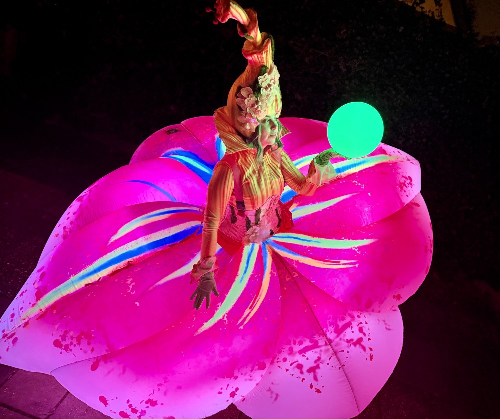 Voorjaar, bloemen act, bloemkarakter, bloemen, natuur, fantasie, ontvangst act, welkomst entertainment, dansoptreden, straattheater, openings show