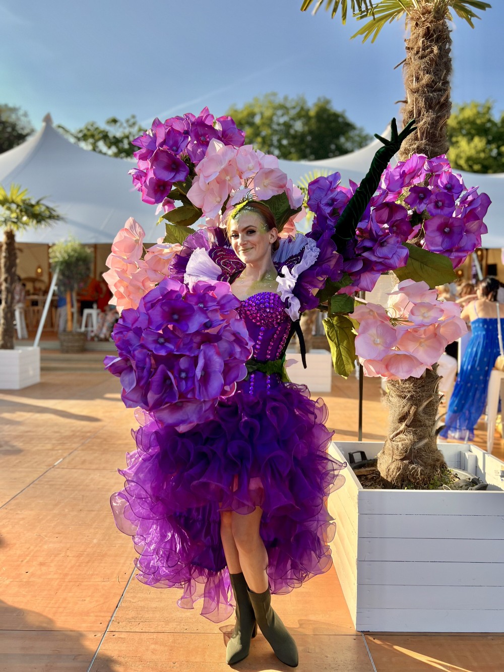 bloemen act bruiloft, bloemenfiguur evenement, luxe straattheater, bloemenshow boeking, levende bloem decoratie, entertainment bruiloft zomer, chique bloemen animatie, floral costume act, XL bloemen act, botanisch entertainment