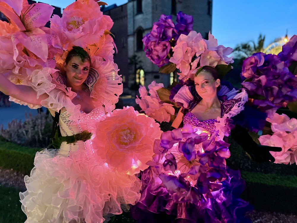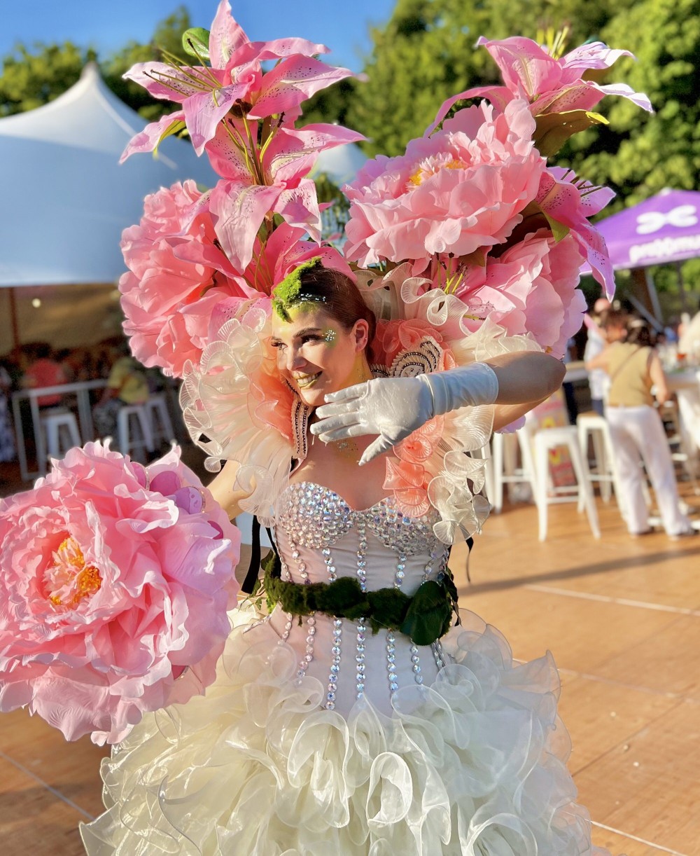 bloemen act bruiloft, bloemenfiguur evenement, luxe straattheater, bloemenshow boeking, levende bloem decoratie, entertainment bruiloft zomer, chique bloemen animatie, floral costume act, XL bloemen act, botanisch entertainment